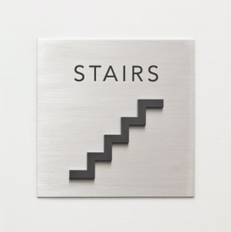 這是一塊非常有立體感的創(chuàng)意樓梯功能標識,樓梯圖形的的設計非常精巧、就以樓梯圖形模板設計的功能標識圖案,簡單、明了、易識讀,很突出功能標識的明確特效。